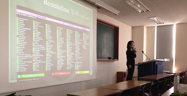 ¼º½Å¿©´ë ÀçÇлýµéÀ» ´ë»óÀ¸·Î ÁøÇàµÈ À̳¯ °ÀÇ¿¡¼ ±ÇÀº°æ ÆÀÀåÀº À¯¿£ COI Ȱµ¿ ¹× ±¹Á¦»çȸ¿¡¼ÀÇ ºÏÇÑÀÎ±Ç È°µ¿°ú °ü·ÃÇÑ Àü¹ÝÀûÀÎ ¼Ò°³¿Í ICNK(ºÏÇѹÝÀεµ¹üÁËöÆó±¹Á¦¿¬´ë)°¡ °É¾î¿Â Áö³ 4³â°£ÀÇ Çຸ, ¶Ç ±×¿¡ µû¸¥ °á°ú¹°À» ÁÖÁ¦·Î °ÀǸ¦ ÁøÇàÇß´Ù. Çлýµé¿¡°Ô ´Ù¼Ò »ý¼ÒÇÑ ¡®¹ÝÀεµ¹üÁË(crimes against humanity)¡¯, º¸È£Ã¥ÀÓ¿øÄ¢(Responsibility to Protect)°ú °°Àº ±âº»ÀûÀÎ ±¹Á¦Á¤Ä¡ÇÐ °³³äµé¿¡ ´ëÇÑ ÀÌÇØ¿¡¼ºÎÅÍ, ºÏÇÑÀαÇÁ¶»çÀ§¿øÈ¸(Commission of Inquiry) ¼³¸³, ºÏÇÑÀαǰáÀÇ¾È Ã¤Åÿ¡ À̸£±â±îÁö ±¹Á¦»çȸ¿¡¼ÀÇ ºÏÇÑÀ뱂 Àνİú ÀαǻóȲ °³¼±À» À§ÇÑ ICNKÀÇ È°µ¿À» ÁßÁ¡ÀûÀ¸·Î ¼³¸íÇß´Ù.
